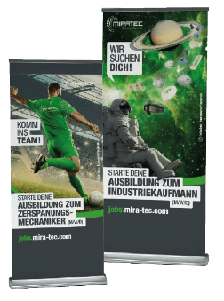 • Rollupsysteme – Flexible, transportable Banner für spontane und variable Einsatz möglichkeiten